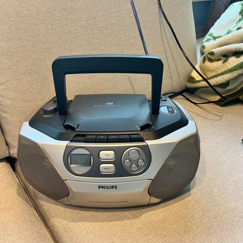 Radio med CD og kassettspiller. Ca mål 40x23x15 cm. Se bilde 2 for modell.