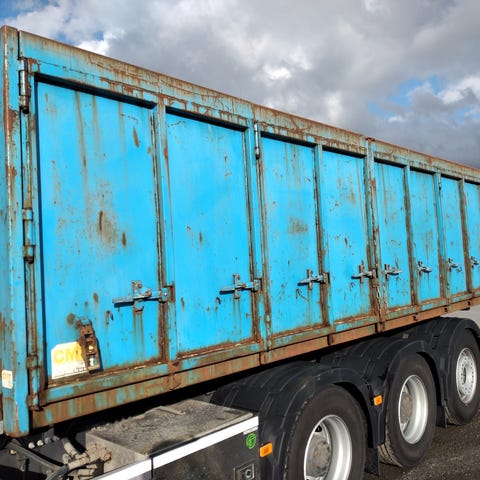 Tippkasse i blå utførelse. Kassen er beregnet for tipping av masser som grus, stein, jord eller avfall.Egnet for bruk i anlegg, transport og entreprenørvirksomhet.
