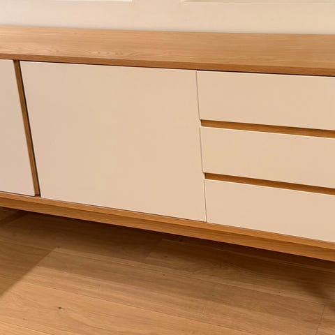 Skjenk/skap fra Bolia i mørkebeist eik 2 skap satt sammen, bredde 80 cm på et skap. En dør er ødelagt i push klikk, men mulig det går an å bestille nye deler. Et skap kostet nytt i dag ca 9000,-