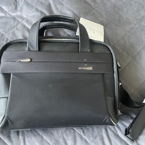 Samsonite er ett klassisk herre beg flott skinn i sort vesken med diverse lommer til dokumenter pc mobil og mer, breden 42 cm lengde 29 cm,bærehåndtak se bilde nesten ikke brukt selges kr 1400.