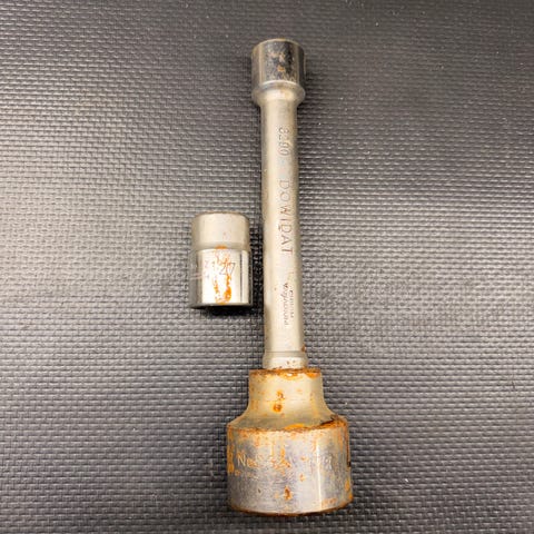 Verktøyet er brukt og har normal slitasje og noe overflaterust/patina etter alder. Ingen deler er pusset opp eller skjult – dette er ærlig stand. Mekanisk fremstår delene solide.