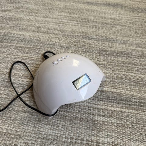 UV LED neglelampemaskin i hvit farge. Enheten har digitalt display i front og flere knapper på toppen for tidsinnstilling. Lampen kobles til med ledning og er egnet for herding av neglelakk og geléprodukter på hender eller føtter. Passer til hjemmebruk eller enkel salongbruk der det trengs en kompakt UV/LED-lampe til negler.