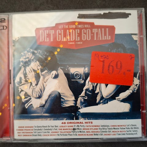 Det glade 60-tall CD-samling med 2 CD-plater. Utgivelsen inneholder 48 originale låter fra 1960–1963, med ulike artister samlet på ett album. Coveret viser fullstendig låtliste på baksiden, og innmaten har oversikt over sporene på hver CD. Format: CD, 2-disc samling. Sjanger: populærmusikk fra 1960-tallet.