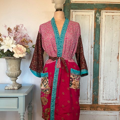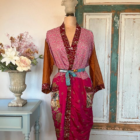 sateng silke robe komono kåpe klesspakke vintage klassisk tidløs blonde lace