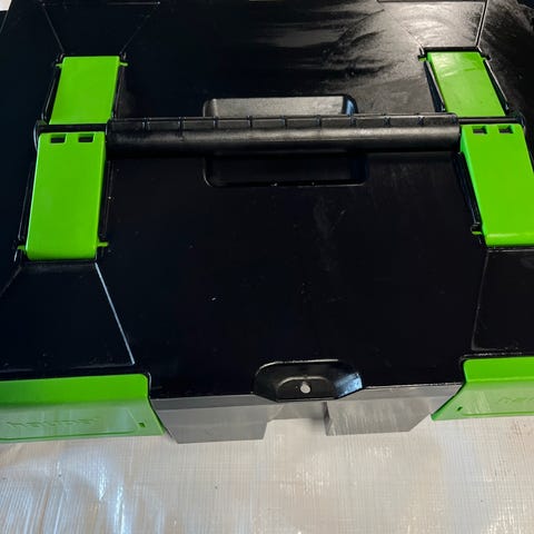 Essve spikerpistol koffert i grønn plast. Kofferten er formstøpt innvendig for oppbevaring av spikerpistol med tilbehør. Egnet for transport og lagring av verktøyet, beskytter mot støt og gjør det enklere å holde orden på delene.