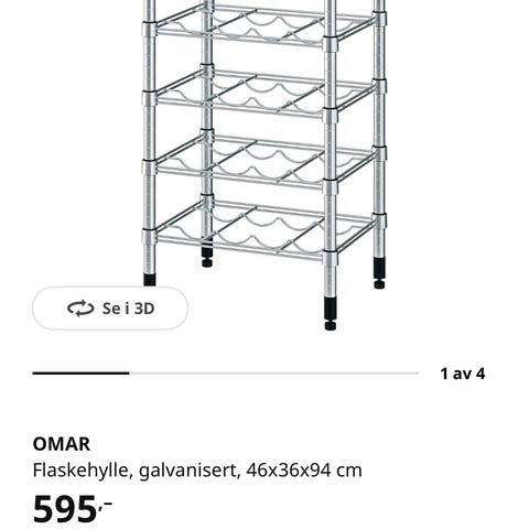 Ikea - OMAR Flaskehylle - 48 fl. (Ny pris: 1190,-)