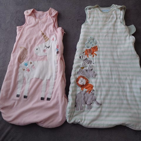 H&M baby sovepose i størrelse 50. Soveposen er laget i bomull og har et flerfarget hjerteprint.