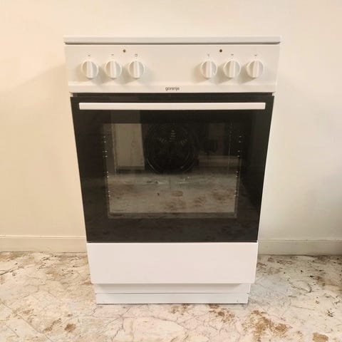 Gorenje keramisk komfyr i hvit utførelse. Komfyren har keramisk topp med fire kokesoner og stekeovn med glassdør. Betjenes med dreieknapper plassert på fronten. Egnet for frittstående plassering på kjøkkenet der det er behov for komfyr med keramisk koketopp.