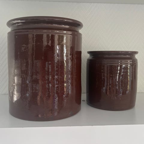 Stor keramikkrukke brun glasert med hanker