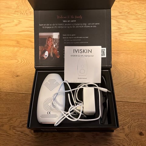 Iviskin Go Smooth IPL hårfjerner i rosa. Enheten leveres i original eske med strømadapter og beskyttelsesbriller. Hårfjerneren er beregnet for hjemmebruk og benytter IPL-teknologi (intens pulserende lys) for å redusere hårvekst på kroppen. Egnet for bruk på flere kroppsområder i henhold til produsentens anbefalinger. Strømtilkobling via medfølgende adapter.