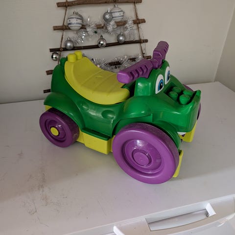 1-3 år, Du rir over blokkene, han plukker dem opp og legger dem i bagasjerommet sitt.