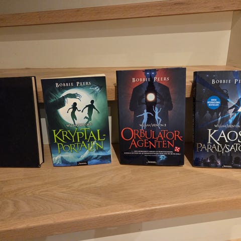 Fire nye pocket ungdom. Ikke lest, stått i bokhylle. Litt gul på ytterkant på blader, ikke helt hvite, som da de ble kjøpt.
