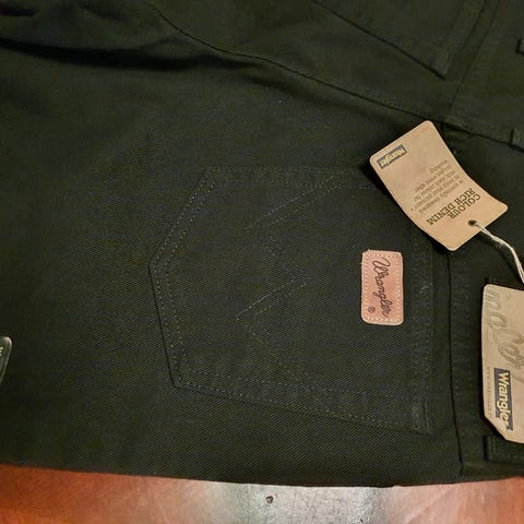 Grønn og blåstripete blusene er fra Wrangler, str. M.