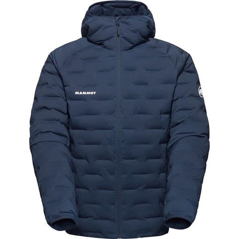 Jakken er fylt med dun og har vatterte paneler for jevn isolasjon.