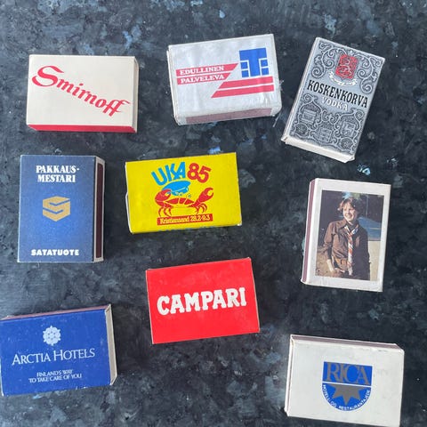 Samleobjekter, se bilder. 250kr. for de gamle eskene og 100kr for lightere . Selges samlet. Alle eskene har fyrstikker. Pluss frakt. Kan sende.