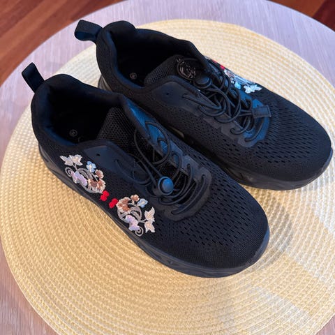 Fantastisk lett bunadjoggesko med brodering i nasjonalt mønster og elastiske lisser. Innersålen er i memory foam materiale, som former seg etter foten og gir støtte og avlaster fotbuen. Dette gjør at den har meget god demping. Overdel i mesh som gir god støtte og gode pusteegenskaper. Yttersålen har god demping og passer perfekt til lange dager på variert underslag og mye aktivitet, som f.eks 17. mai. Overdel og såle har samme farge, noe som gjør at skoen passer perfekt til de fleste , men ellers en perfekt jogge-/ fritidssko