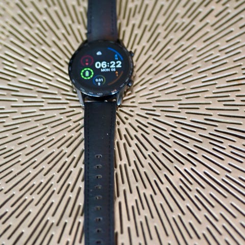 Amazfit GTR 2 Pro smartklokke i svart med rund berøringsskjerm. Klokken har to fysiske knapper på siden og utskiftbar reim. Den viser tid, dato, skritt, puls og andre aktivitetsdata på skjermen, og støtter ulike urskiver, inkludert analoge og digitale visninger. Egnet til daglig bruk og aktivitetsregistrering for både menn og kvinner.