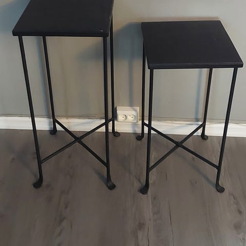 Pidestall/sidebord i sort metall selges. Bordet kan enkelt demonteres, dette gjør så man fint kan velge om man ønsker en eller to etasjer 😊
