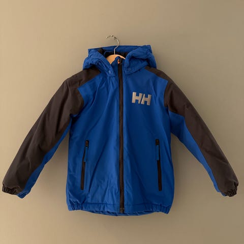 Helly Hansen jakke for barn i størrelse 104. Jakken er tykk og god, og har vært en favoritt her hos oss.
