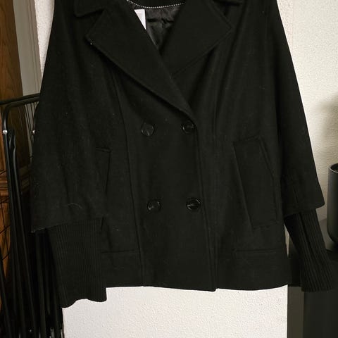 Svart jakke. Str L. Brukt en gang. Fiks ferdig