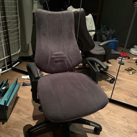 Kjempefin justerbar kontorstol. Kan settes forskjellige vinkel med ryggstøtte, sete. Også stor justerbart i høyden.