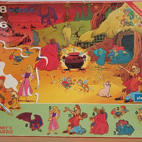 Eldre puslespill i tre hvor alle 75 brikkene er intakt og svært fine. Esken er slitt.