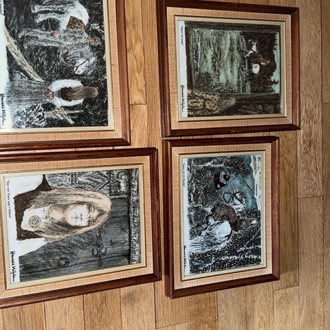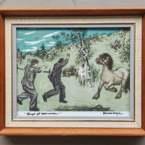 Porselensbilde fra en Kveld i Hakadal, Skogsvegen, Det var Guro upp i Dalen og Guro rid forbi av den Kunsteren Harald Kihle
