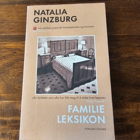 I den selvbiografiske klassikeren Familieleksikon (1963) tegner Natalia Ginzburg et kjærlighetsfullt, morsomt og uforglemmelig portrett av sin italienske familie og av det italienske samfunnet under fascismen og nazismen. Faren Guiseppe og moren Lidia - stadig på kollisjonskurs - fyller hjemmet i Torino med venner, bøker og politikk. Det krangles og diskuteres, og historier fortelles, om barn barnebarn, beste- og oldeforeldre, tanter og onkler, bekjente og berømtheter. Og midt i dette, samtidig som Mussolinis skygger faller over landet, vokser fem barn opp.