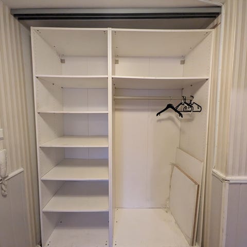 Dobbelt garderobeskap. Hvert skap er innvendig 88 cm bredt. Hver skyvedør er 92 x 202. Se forøvrig bildene. MÅ HENTES 13. FEBRUAR!