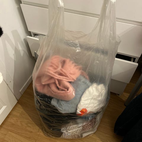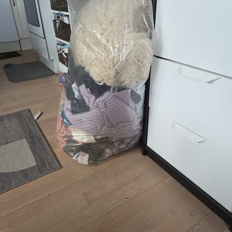 Stor sekk med 60 plagg