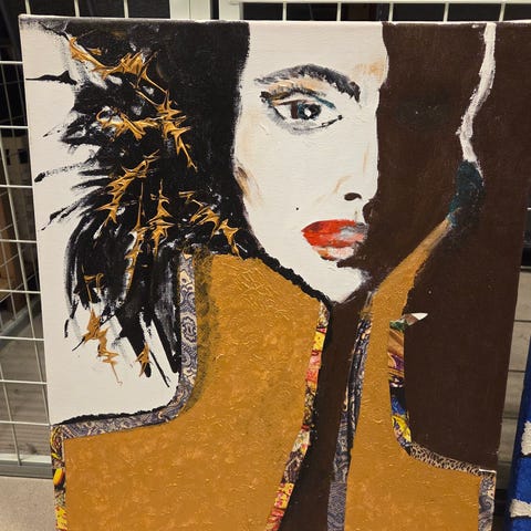 Maleri portrett med lysmotiv lilla og oransje