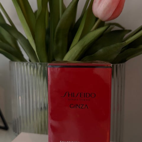 Shiseido parfyme i rektangulær glassflaske med rød kork og rød innside. Flasken inneholder en rødlig/rosa duft. Egnet som duft til personlig bruk. Nøyaktig modellnavn og mengde er ikke oppgitt. 50 ml edp