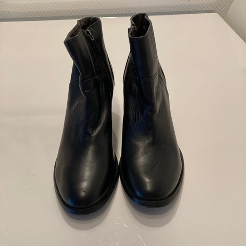 Högl vinterstøvler i svart skinn i størrelse 39 /str 6 Støvlene har glidelås på siden og grovmønstret yttersåle. Innvendig er de fôret for ekstra isolasjon i kaldt vær. Passer som praktisk og varm vintersko til hverdagsbruk.