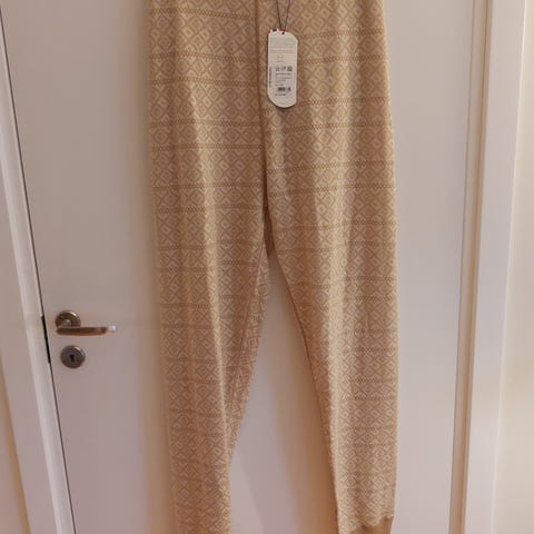 Stillongsen er i beige farge med mønster og er laget i ullmateriale som egner seg godt som innerste lag. Passer til bruk under tur- og fritidsbukser, samt til hverdags når det er behov for et varmt og behagelig lag mot huden. Ble dessverre for kort til meg. Kun brukt et par ganger.