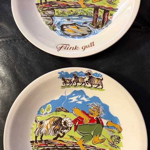 Selger en dyp barnetallerken vintage , Figgjo, « De tre bukkene bruse»