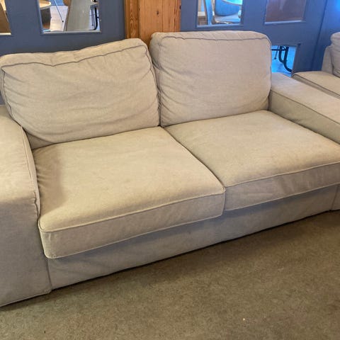 Ektorp 3-seter gis bort mot henting. Den står på et lager, så det er lett å få den inn i bilen med hjelp av tralle