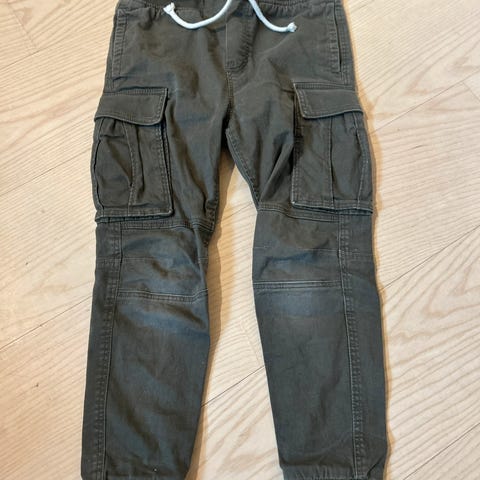 Tøff bukse fra kappahl med snøring i livet i tillegg til strikk. Flere kule lommer. Sydd igjen hull bak, se bilde. Khakigrønn