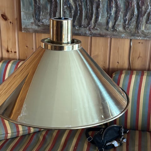 Høvik verk. 80talls lampe (pendel) grønn glass / "messing".