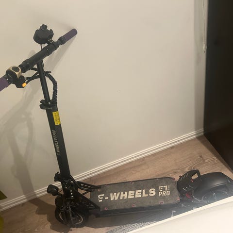 Egner seg til transport over korte og lange distanser. Sparkesykkelen ble kjøpt for 8000kr og ønskes solgt fordi den aldri blir brukt, nå som jeg har bil lappen. Sparkesykkelen har aldri hatt problem med å kjøre opp bratte bakker med folk uansett vekt. Dekkene er ikke slitte og kan derfor kjøres med når det er vinter og relativt glatt. Den er veldig fin for deg som ikke bare kjører på asfalt, men også i andre terreng. Batteri kapasiteten er ekstremt bra og må lades sjeldent. E-Wheels E7 elektrisk sparkesykkel i svart farge. Modellen har bred ståplate med E-Wheels-logo, kraftig ramme og store dekk egnet for variert underlag. Styret er utstyrt med display for hastighet og informasjon, gasshendel, bryter for enkelt- eller dobbeltmotor (SINGLE/DUAL), samt egen av/på-bryter. Sparkesykkelen har frontlys og baklys for bedre synlighet.