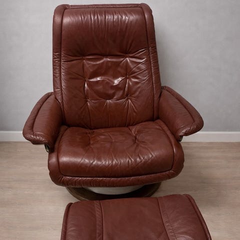 Komfortabel stressless m/justerbar ryggstøtte og fotskammel