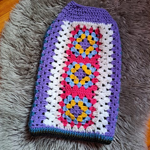 Hundevest. Heklet. Lengde med hals 42 cm, bredde 24 cm. Pris 250 kr +frakt