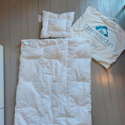Pent brukt baby dundyne fra Andungen str 65x80cm. Brukt til et barn i noen mnd. Nypris 750,-