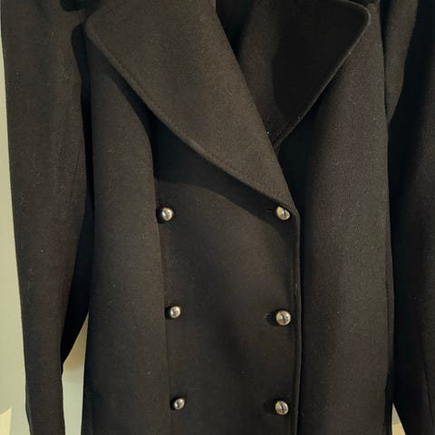 Ubrukt, tidløs, mørkebrun vinterkåpe i ull