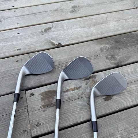 Selger 3 stk. TaylorMade MG4 grafittwedger (50, 54, 58) med Speeder NX 50-R skaft. Flex er REGULAR. Køllene er kun brukt en sesong og er i meget god stand. Selges grunnet overgang til samme køller, men med andre loft.