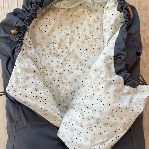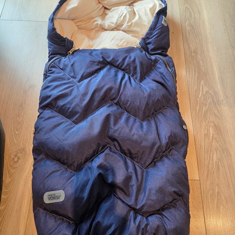 Voksi Classic Mini vognpose i svart med rød innside. Vognposen har snøring rundt hodeåpningen og åpning til seler. Leveres med original oppbevaringsbag med teksten «Classic Mini» og «Design for your baby». Egnet for bruk i barnevogn til baby og småbarn.