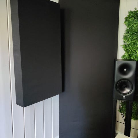 acoustic panel using 10 cm Glava Save’n’Sound for excellent broadband sound absorption. Perfect for studios, drum rooms, rehearsal spaces, home offices or home cinemas. Reduces echo and improves clarity.