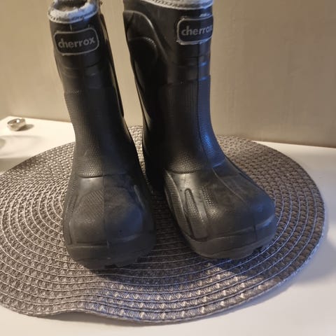 Viking gummistøvler for barn i størrelse 27. Støvlene er unisex og kommer i svart farge. De har mønstret yttersåle for bedre grep. Egnet til bruk i vått vær og på regnværsdager.