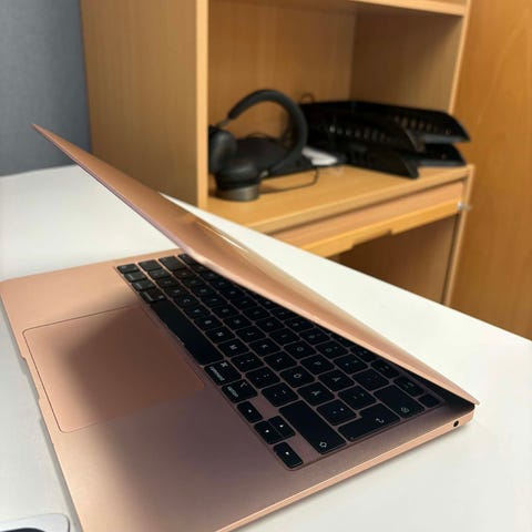 Apple MacBook bærbar PC i grå farge. Skjermstørrelse er 13 tommer. Enheten har innebygd tastatur, styreflate og webkamera. Egnet til generell bruk som nettlesing, tekstbehandling, studier og kontorarbeid. Leveres med macOS installert, klar for oppsett av ny bruker.