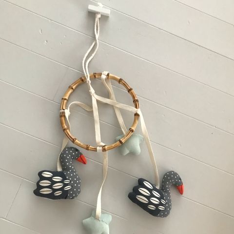 Uro til babysengen, spiller musikk og snurrer. Veldig lite brukt.