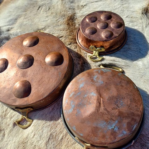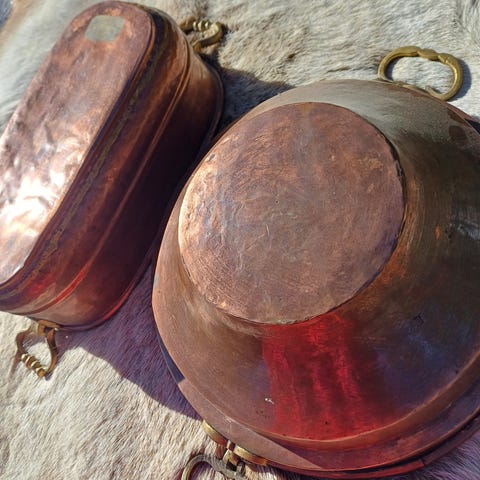 4 gamle sjaemerende kobberlokk for oppheng